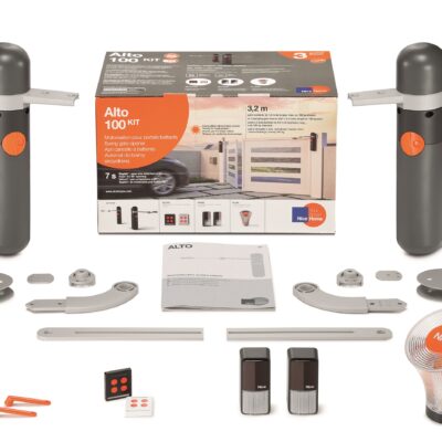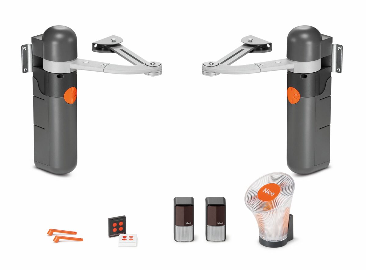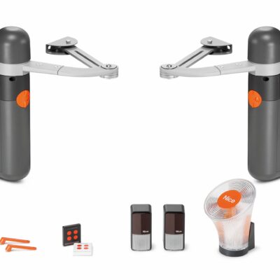 Zestaw automatyki do bram skrzydłowych – całkowita długość bramy 3,2m. Każde skrzydło o maksymalnej długości 1.6 m (przy ciężarze max. 100 kg). Zestaw przeznaczony do samodzielnego montażu.
