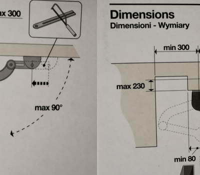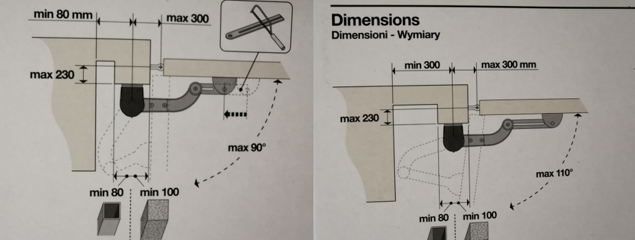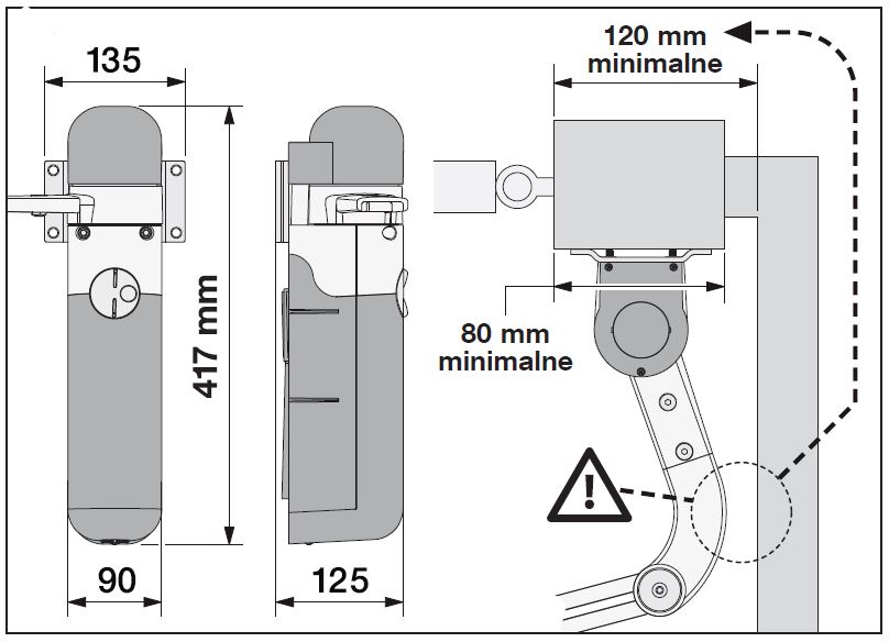Siłowniki można montować na szerokie słupki – odległość od krawędzi słupka do zawiasu do 23cm.