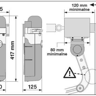 UWAGA: Do poprawnego działania siłowników wymagane są mechaniczne ograniczniki krańcowe na podjeździe. W siłownikach nie ma zamontowanych ograniczników.